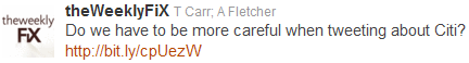 Is that a warning that we have to be more careful when tweeting about Citi? Actually, it’s nothing of the sort. It’s just another instance of a corporation seeing business opportunities in social media sites originally meant for individuals.