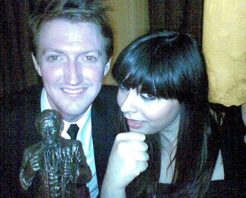 BNP Paribas’ head of FX structuring (EMEA), James Davison, went up to collect the award for most innovative bank for foreign exchange, 2010. theweeklyFiX’s Alex Fletcher (below) managed to get herself snapped with the proud recipient and his award.