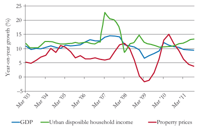 | Growth of GDP, disposable income and property prices |