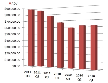 Indeed, as the data showed, the amount of money FXall earns per million dollars has been in steady decline. The average transaction fee on active trading, related to the firm’s ECN platform and continuous stream platform – used primarily by banks, broker-dealers, hedge funds and prime brokers – is now $6.25 per million dollars, down from $7.22 at the same period a year ago.