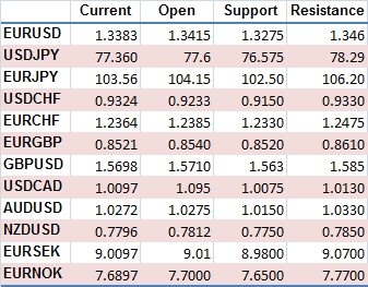 EURUSD made an early upward move to $1.3428, but encountered selling from intra-day range traders, which brought the pair back to the $1.3400 territory. Traders at a top-five bank have said the short-term trading community has a preference to be long EUR and even to hold over the weekend, assuming no negative surprises from the ECB.