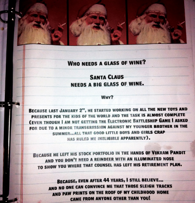 Poor Vikram Pandit can’t catch a break. Despite Citi stock being up almost 44% over 2010, and profits and revenues on the rise as credit losses decrease, Pandit seems to get blamed for everything. In January, the Indian police reportedly filed a case against Pandit and other senior Citi executives because of an alleged $70 million fraud at a Citibank branch in a New Delhi suburb. Yet more bizarre – the fraud was supposedly reported to the police by Citi itself. But an accusation made in a bar menu in the East Village in New York City poses perhaps the biggest threat to Pandit’s good-guy reputation. He’s apparently lost Santa Claus’s retirement funds.