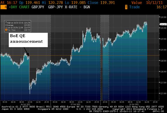 Following the Monetary Policy Committee’s surprise announcement on October 6 to add another £75 billion-worth of asset purchases to the Bank of England’s balance sheet, GBPJPY immediately fell 1.3%. But the currency pair began to retrace the moves aided by positive headlines and has since gained 2.74% since Thursday’s lows.