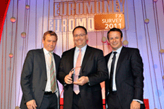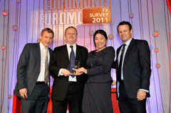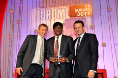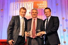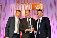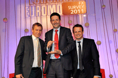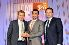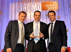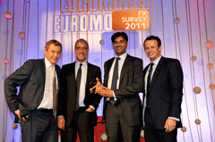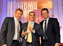 Euromoney FX survey 2011 WinnersClick on image to open high-res imageClick on Award title to access resultsEuromoney FX survey results Albert Maasland, Saxotrader Multi-bank platformsBest for speed of executionBest research and analytics Keith Hill, FXallMulti-bank & independent platformsBest market share Ala’A Saeed, CitigroupElectronic tradingBest for effective risk management tools Nick Howard, Barclays CapitalElectronic tradingBest algorithmic execution capabilities Karen Kam & Philip Wood: Deutsche BankElectronic tradingBest market share David Wright, Morgan StanleyBest client service, the Americas timezone Sarah Lyall, HSBCBest client service, Asia timezone Christophe Coutte, SGMost improved by volume: Asia Garth Williams, NomuraMost improved by volume: Western Europe Nick Crawford, UniCreditMost improved by volume: Banks Bernie Sinniah, CitigroupBest market share: Non-financial corporations Fabrizio Russo, NomuraMost improved by overall volume Richard Longmore, UBSBest market share: swaps Jonathan Tinker, Deutsche BankBest market share: options Chris Vogelgesang, UBS3rd place, total market share Nick Howard, Barclays Capital2nd place, total market share Results index | Methodology Kevin Rodgers and Neehal Shah, Deutsche Bank1st place, total market share Buy side excited by multiple choiceBanks take fight to the algo tradersHSBC raises its gameEuromoney FX survey results