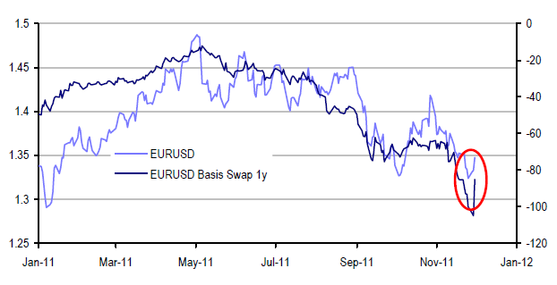 EURUSD spot vs EURUSD basis swap |