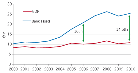 The numbers appear daunting. RBS analysts suggest that European banks’ balance sheets have almost doubled in the past 10 years to €26 trillion in aggregate, which is equivalent to 235% of GDP. To get them down to 190% of GDP will require banks to shed over €5.1 trillion of assets, given that equity investors are unlikely to flood into banks’ shares amid such fundamental uncertainty over their resilience, earnings power, business models and regulatory burden.