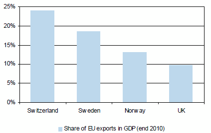 An ensuing eurozone crisis would also dramatically hit the real economy of European countries, with Switzerland likely to be one of the most heavily affected. Looking at the share of exports to the EU as a percentage of GDP, it shows Switzerland leading the way, with EU export exposure amounting to almost 25% of GDP.