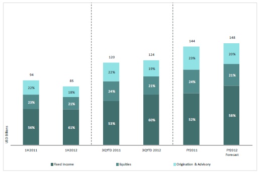 FICC remains the biggest source of revenue for the leading investment banks, with Coalition predicting it will account for 58% of total revenues in 2012, up from 52% in 2011.