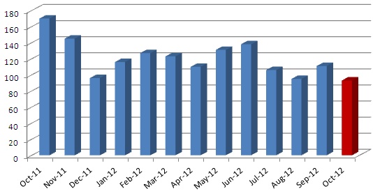 Average daily volume in FX spot was $92.6 billion last month, down 17% on September and 46% lower than in October 2011. That is the lowest level of activity since Icap acquired EBS in 2006 and means average daily volumes on the trading platform have dropped by more than 60% since peaking at $253 billion in March 2008.