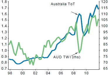 AUD trade-weighted index versus terms of trade |