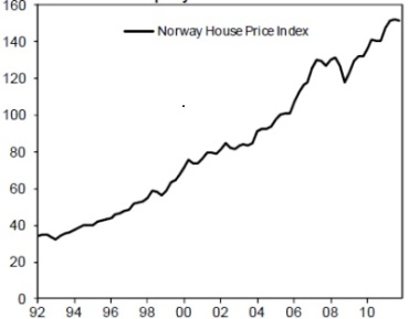 The problem for the Norges Bank, however, is that, unlike the SNB, low interest rates are not appropriate for the current economic situation, given the country’s rapid credit growth and house-price inflation.