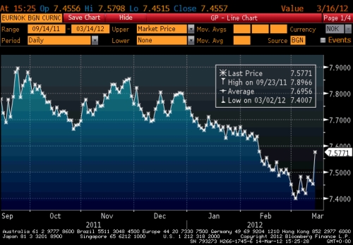 The krone had been sent to a nine-year high around NKr7.40 against the euro earlier this month – and its highest level on a trade-weighted basis since 1986 – as investors bet that rising oil prices and a relatively favourable growth outlook would support the currency.