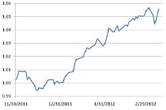 | ‘Smalls’ versus G4 (30 Dec 2011 = 1) |