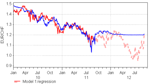 EURCHF – actual and projected |