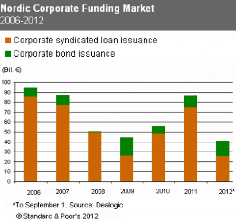Companies throughout Europe and the Nordic region have traditionally relied heavily on cheap bank loans for funding, with a smaller proportion of their total annual funding raised on the international and domestic capital markets.