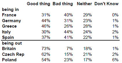 Only in Germany is there a growing majority that believes that integration has been an economic boon for the nation and a strong majority that says EU membership has been good.