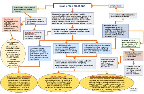Harvinder Sian, European interest-rate strategist at RBS, says what is striking is the sheer complexity of the possible outcomes that are dependent on the many choices the Greek electorate and core Economic and Monetary Union policymakers will make in response to market pressure and prior choices.