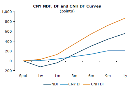 In January, the NOP limit was increased from 10% to 20%, which traders say caused the one-year CNH DF curve to drop more than 300 points in two weeks.