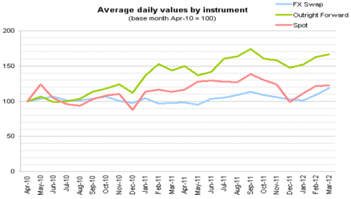 Year on year, average daily values in swaps have grown 20%, while spot and forwards have grown 6% and 15% respectively.