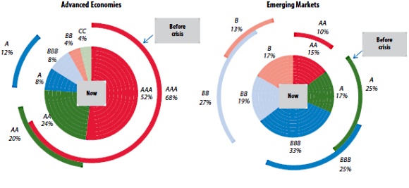 | Source: IMF estimates based on S&P ratings of 25 advanced and 48 EM economies |