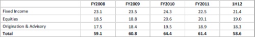 Fixed income remains the biggest source of revenue for the big banks, with Coalition predicting it will make up 57% of the total in 2012.