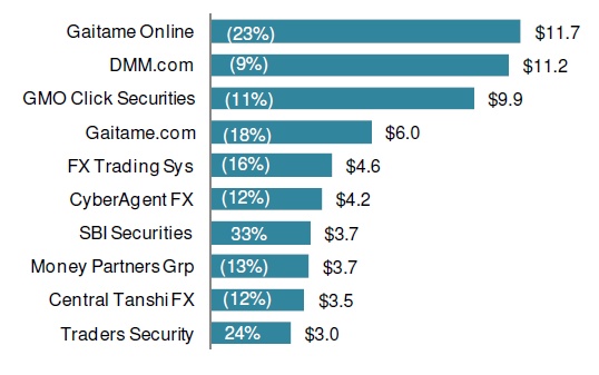 Top ten Japanese retail FX brokers by daily trading volume 2011 |