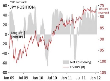 “The main driver of yen strength during the second half of 2011 was safe-haven demand for short-term Japanese money market securities, which is likely easing now that risk sentiment is improving.”