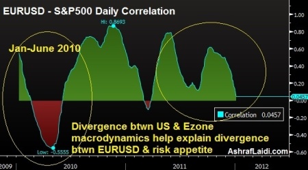 Correlation between EURUSD and S&P500 drops to zero |