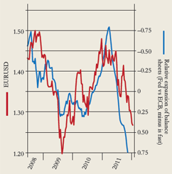 The shift in the behaviour of the euro can be seen in its new relationship with stocks. The correlation between the euro-dollar rate and the S&P500 stood at 0.8 in May, fell to 0.5 in November and now stands at 0.07. The euro-dollar rate, in other words, now has a zero correlation with equities.
