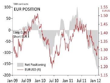 Short euro positions retreat from record levels |