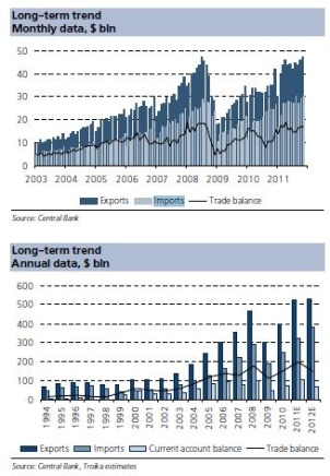 However, Troika Dialog warns that investor sentiment and the large increase on imports and exports may be “temporary”: