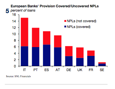 “It turns out that Italian und Portuguese banks could be most affected by AQR and the stress tests, given high level of NPLs and below-average levels of risk provisioning.”