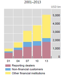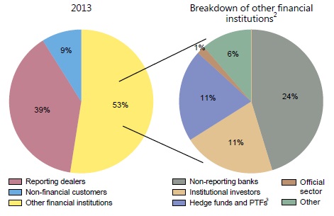The growth of FX trading was driven by financial institutions other than the 1,300 banks and reporting dealers that participated in the 2013 survey.