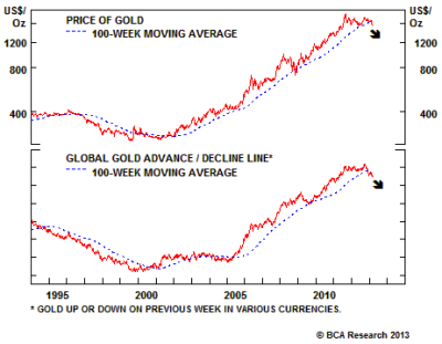 Our global gold advance/decline line has broken below key support and is at a 2-year low.