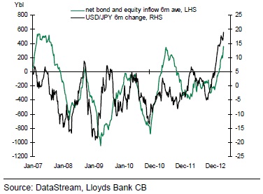 | Japanese asset flows and USDJPY |