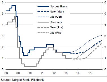 Tom Levinson, strategist at ING Financial Markets, says that is because while reduced fears over eurozone government debt are a necessary ingredient for the SEK and NOK to depreciate on a sustained basis, a further important catalyst would be expectations of renewed monetary easing from the Riksbank and Norges Bank.