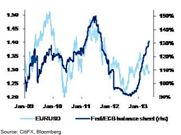 | EURUSD and the ratio of ECB vs. Fed balance sheet |