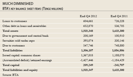 Yet sources close to the lender feel slightly differently: if Samruk insists on the sale of BTA to Halyk, they say, the latter might feel bound to absorb its much-diminished and possibly still-troubled peer. Worse, any such deal might hinder Halyk’s reputation, as well as its financial prospects.