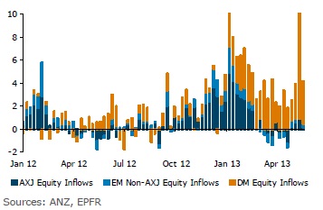 With global growth and inflation fears receding, diversification flows might have peaked regardless of the exact timing of the start of the Fed’s pullback from its QE programme.