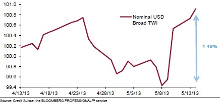 Real yields on US 10-year bonds have risen by 30 basis points since the better-than-expected US employment report on May 3, helping to pull the dollar higher as expectations build that the Federal Reserve will taper the pace of its quantitative easing (QE) programme in the second half of the year.