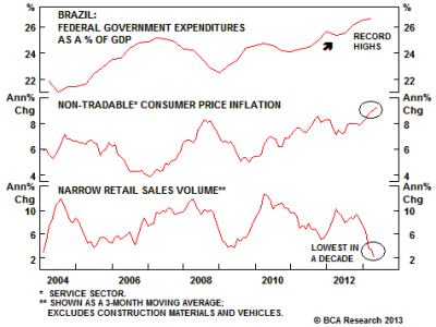 Our Emerging Markets Strategy service continues to recommend shorting the real versus the US dollar, and underweighting Brazilian sovereign credit and equities within EM credit and equity portfolios.