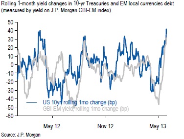 | Brutal sell-offs in treasuries and EM local currency debt |