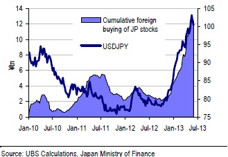 He says for foreign investors, if the asset price effect of Japan’s new easing programme is anywhere near what the Fed achieved with its QE in the past few years, there is no reason to exit the market anytime soon, especially with currency hedging still relatively cheap.