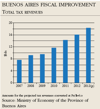Since 2007 the province has introduced two new tax reforms and modernized its collection technology. Combined, these initiatives will lead to an increase in total tax revenues of 141% between 2007 and 2013, if this year’s projections are accurate. The province has also created a fiscal surplus in the year to July, for the first time during the current administration. The province’s debt-to-GDP ratio has fallen from 14.7% in 2005 to 9.1% in 2012 and is projected to fall to 5.3% in 2015. The debt-to-total revenues ratio has also fallen, from 130.6% in 2005 to 65.1% in 2012, and is projected to fall to 28.9% by 2015.