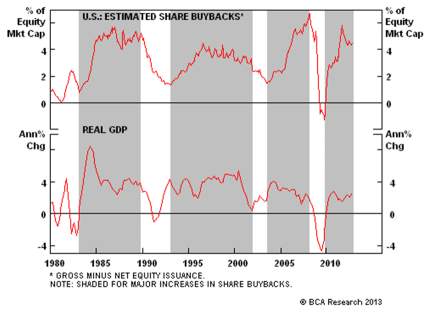 The key to sustaining the bull market is growth. Buybacks won’t save the day if underlying profit growth stagnates again in 2013 as it did in 2012.