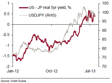 | USDJPY versus 10-year real yield spread |