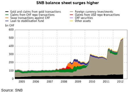 Those FX reserves have reached record levels as worries over the eurozone debt crisis sparked massive haven demand for the franc. The SNB’s stockpiles now stand at more than SFr400 billion, or nearly 70% of Swiss GDP, and the central bank has warned that managing those reserves is a substantial challenge.