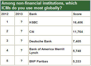 Which ICMs do you use most – Includes: Euro transactions; Dollar transactions; Sterling transactions; Yen transactions in Europe |