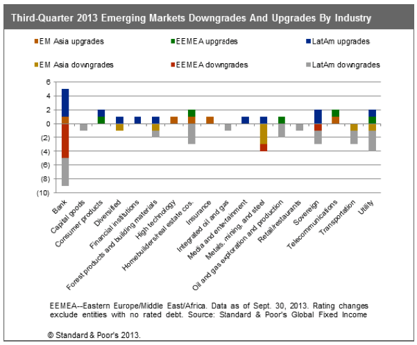 Yet even Asia saw above-average numbers of downgrades in the third quarter of 2013. Standard & Poor’s downgraded 34 emerging market issuers – 60% of total rating actions, higher than the region’s 18-year average of 51%. Latin America was worst hit, with 20 downgrades, 13 of which came in Argentina. Eastern Europe, the Middle East, and Africa and emerging Asia had seven downgrades each. According to Fitch, there have been nine emerging market company defaults on $7.7 billion of dollar-denominated bonds from January to end-November, compared with five issuers and $2.9 billion for 2012. “The par weighted average recovery rate on 2013 defaults fell to 45.4% in October from 55.4% in September, mostly due to bonds issued by Eike Batista’s OGX group, an oil-and-gas-drilling operation, which traded at a low 8.7% of par following default.