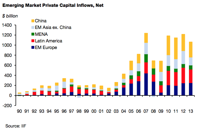 Dealing with politically unstable or unpredictable emerging markets has been a bridge too far for many, acting as a further catalyst to the flow of money into developed economies. Be it Ukraine, Syria or Iran, the relative weakness of political institutions in many emerging economies adds an unwanted level of risk that many investors do not feel prepared to take in the current climate.